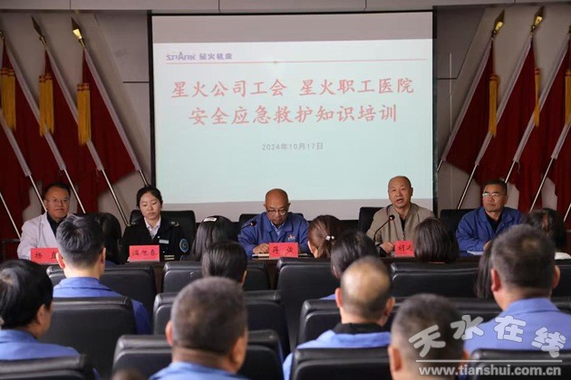 10月17日,甘肃星火智能数控机床有限公司工会、星火医院举办安全应急救护知识培训。星火机床有限公司董事长、甘肃星火公司党委副书记、工会主席蒋俊,天水市第二人民医院肿瘤科主任胡运洲,急救培训专家温秀春,星火医院院长杨直及部分医护人员、职工代表60多人参加。
