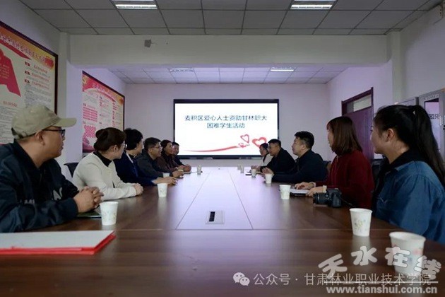 10月15日,中共麦积区委统战部联合我校开展爱心人士资助甘林职大困难学生活动。党委宣传部(统战部)、学生处、环境工程学院负责人及受资助学生参加。