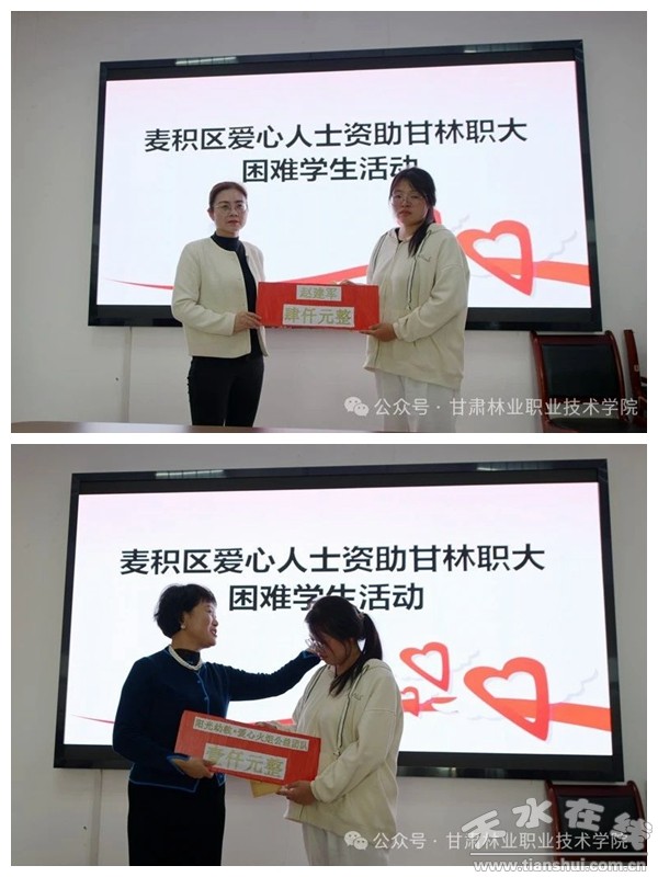 资助活动中,学生处负责人就我校学生资助基本情况作了简单介绍,中共麦积区委统战部负责人介绍了本次资助活动概况,社会爱心人士代表向困难学生发放了资助金。