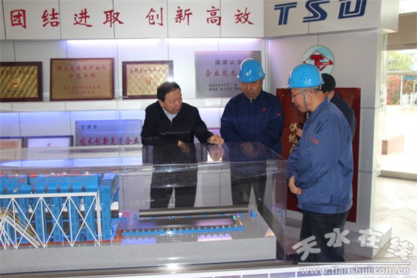 10月21日上午,甘肃省发展改革委员会党组成员、副主任程学钦,甘肃省委金融办协调一处三级调研员朱发奎,甘肃省工信厅规划发展四级调研员荔旺涛等领导一行在天水市发展改革委副主任杨建成、天水市工信局副局长李海云,天水市政府国资委副主任周岳红等领导的陪同下,深入到天水锻压机床(集团)有限公司调研企业发展现状、培育形成的重点产品、企业发展存在的困难问题以及有关政策建议和诉求。集团公司副董事长关尚虎等领导和相关部门负责人参加调研。