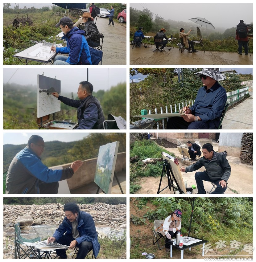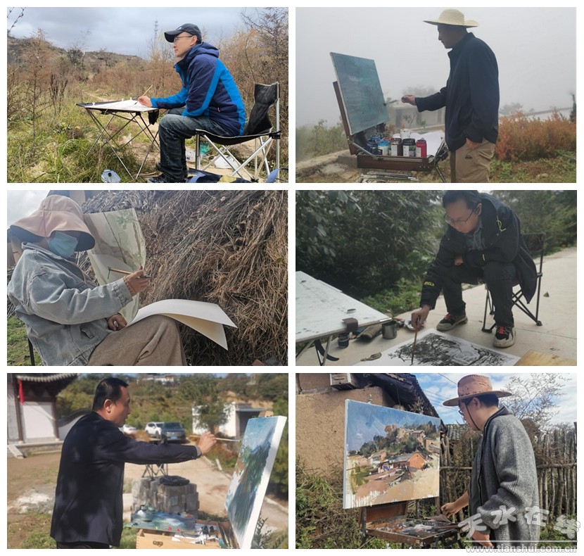 本次活动以秦州区近年来经济社会发生的翻天覆地的变化为主题,聚焦乡村振兴,这些村落村容整洁,产业兴盛,人文历史悠久,自然生态环境向好,是当地的文明村及乡村振兴的示范村。这段时间,天已渐凉,艺术家克服各种困难,冒着阴雨,穿梭在乡村的大街小巷及田间地头进行写生,体验乡村传统文化,描绘乡村新貌新风,多视角,多层次,多风格地表现秦州区乡村振兴的新成果及巨大变迁。