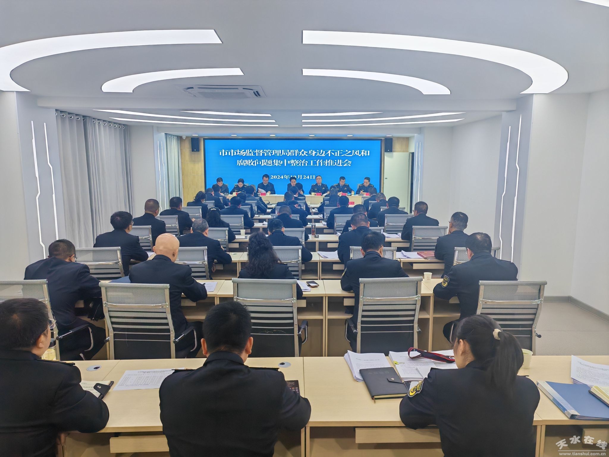 10月24日,天水市市场监管局召开市场监管领域群众身边不正之风和腐败问题集中整治工作推进会议,市市场监管局党组书记、局长董小明主持会议并讲话。会议传达学习了全国和省、市集中整治工作推进会议精神,以及全省市场监管系统群众身边不正之风和腐败问题集中整治暨行风建设推进会议精神,通报了全市市场监管系统集中整治工作开展情况,听取了9个牵头科室和各执法组工作汇报,安排部署了近期集中整治工作重点任务和要求。
