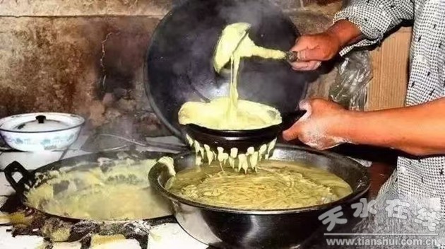 锅鲰有浆水和醋两种。不管是做浆水的还是醋的,都费时——跌锅鲰程序繁琐。醋的要做浇菜,洋芋豆腐胡萝卜什么的,浆水的相对简单点,炝出香喷喷的浆水就行了。这样,上午十一点刚过,祖母或是母亲就催我择菜做准备。完了,不是我洗、切菜。就是她们洗、切。这时她们已将做饭的麦柴抱到了厨房。我烧火,她们在锅上忙。记得那时家里的活似乎特别多,我烧火炒菜的这段时间,她们也要干一点活。浇菜做熟后,祖母或母亲将菜舀到盆子里凉好。将锅刷净,倒上适量水让我烧,开始做锅鲰。