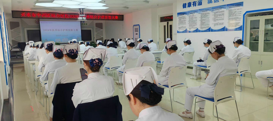 为深入推进医养结合发展,进一步提升医院护理服务质量,为患者提供更加优质、高效的医养结合服务,11月6日,天水市中西医结合医院(市二院)护理部紧紧围绕“内强素质、外树形象”百日攻坚行动和“十个多一点”暖心服务行动要求,在院内举办了医养结合技能竞赛活动,院领导莅临现场指导。经过前期全院选拔,最终有32名选手参加了竞赛。