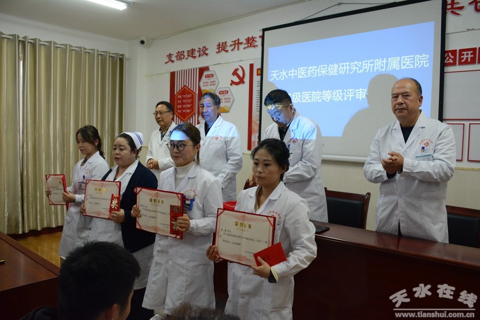 11月9日,为了庆祝天水中医药保健研究所附属医院成功晋升为二级乙等综合医疗机构,该医院对评审中获得的先进个人进行了表彰奖励,全体员工共同庆祝医院顺利通过等级评审。