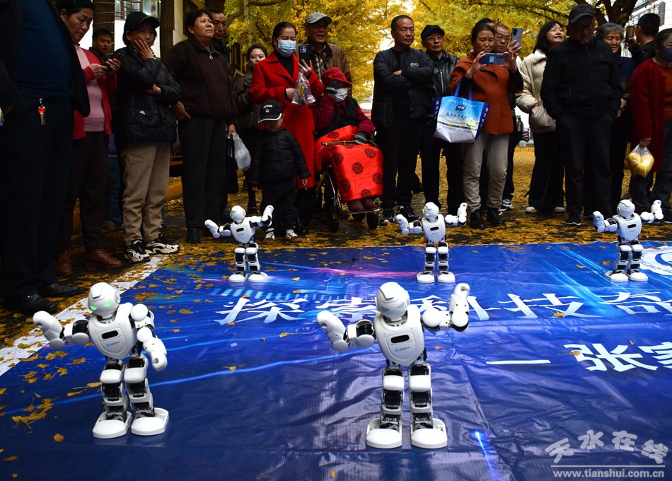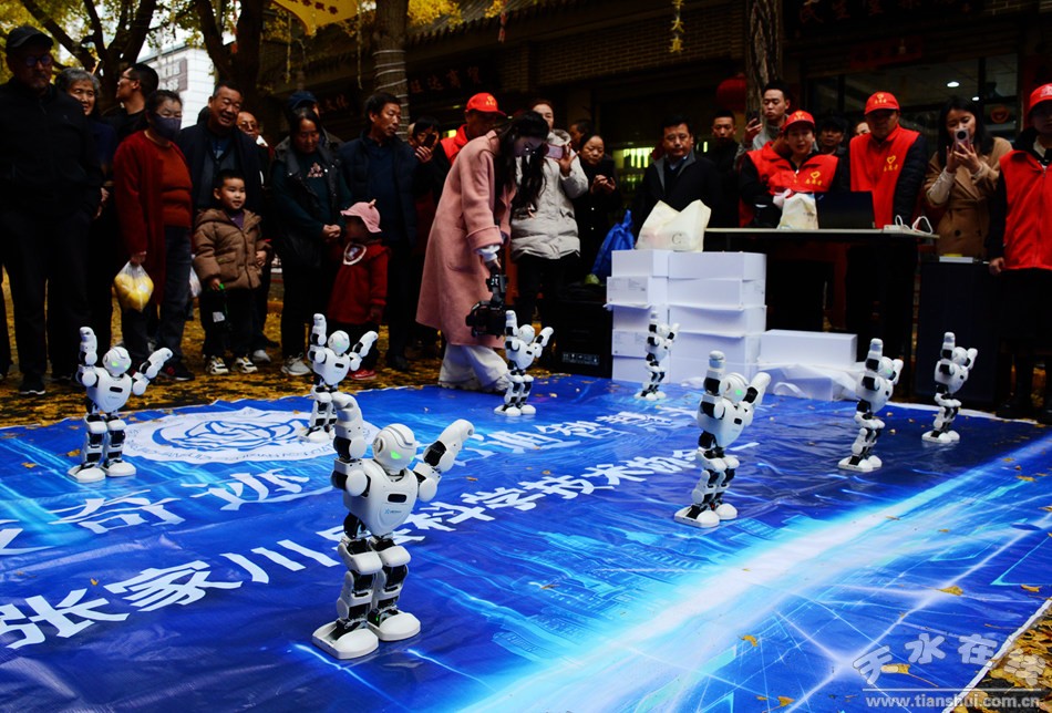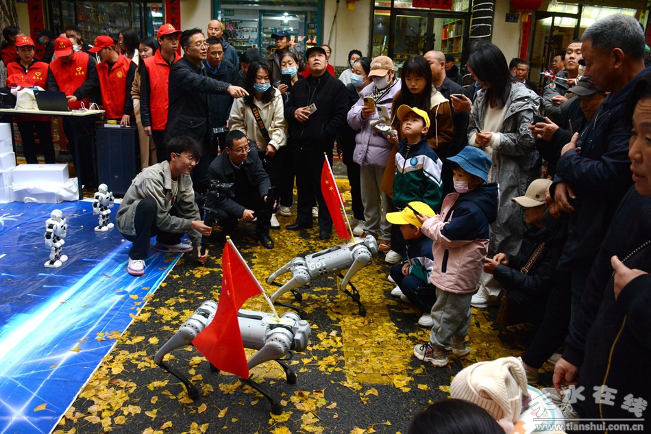 11月11日下午,一场别开生面的“机器人演唱会”在天水“黄金大道”精彩上演。在悠扬音乐的伴奏之下,20台机器人在2台机器狗的带领下编队登台,为观众表演了包括《我和我的祖国》在内的十首动听歌曲,赢得了现场游客的热烈追捧和高度好评。当晚,两台机器狗还为参加2024年甘肃文旅网红创意大会的媒体记者和百名网红进行了表演。此次活动由天水在线精心策划,并由天水市科协携手张家川县科协及甘谷县科协共同组织。