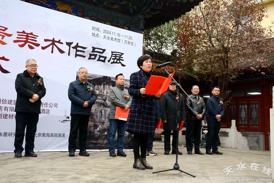 新天水讯【记者李欣桐】11月16日,由天水市文学艺术界联合会主办,天水美术馆、天水书画院、天水市美术家协会承办的“心象写意”周大贵美术作品展在天水美术馆开展。市人大常委会副主任沈建玲出席开展仪式。