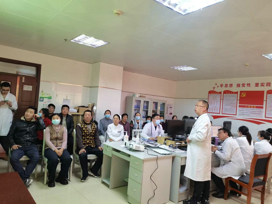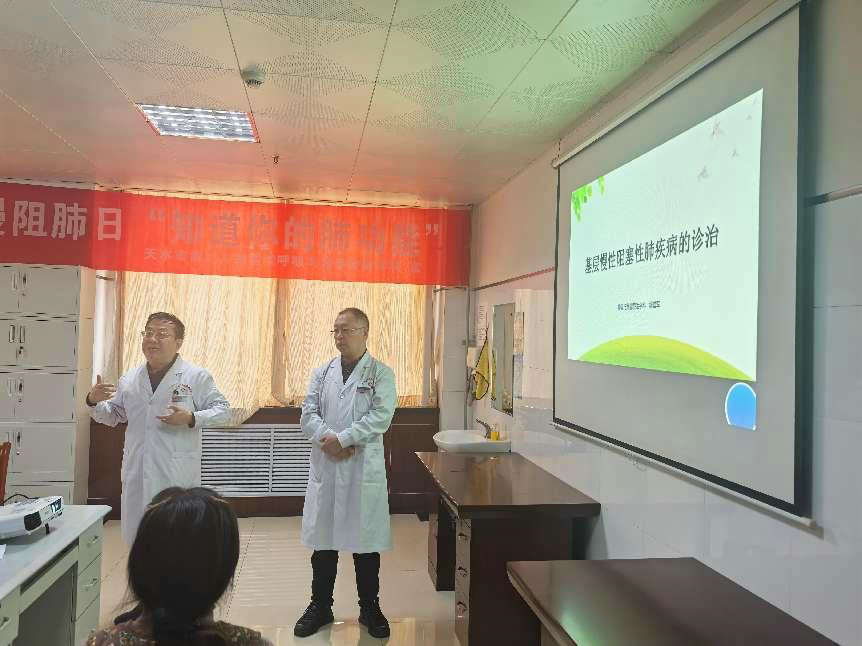 活动中,天津帮扶医疗队专家结合慢阻肺病的相关科普知识向来院就诊的群众、住院患者和家属给予健康宣教、康复建议以及用药指导等,并针对他们提出的问题进行答疑解惑。义诊活动结束后,在呼吸与危重症医学科病区,徐雪军以《关于中国慢阻肺诊疗指南》为题对医务人员作了精彩讲解,并同李林生一起对病区住院患者进行健康宣教以及关于戒烟相关知识的普及,营造了全民抗击疾病,维护生命健康的氛围,得到了患者及家属的一致好评。