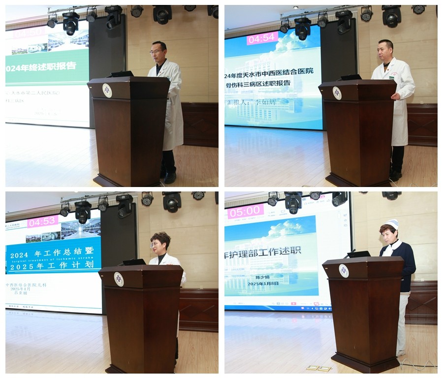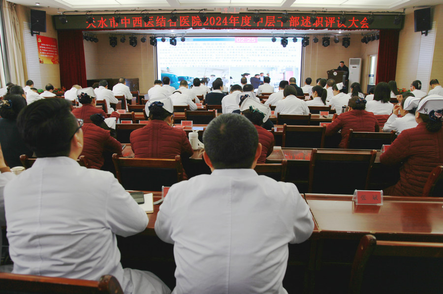 为全面总结2024年度工作,谋划2025年重点工作,进一步强化干部队伍建设,全面考核评价中层干部履职情况。1月9日至10日,天水市中西医结合医院(市二院)在多功能厅利用两个下午时间召开了2024年度中层干部述职评议大会。会议由院长唐志锋主持。院领导班子和各科室主任、护士长及科秘书参加。