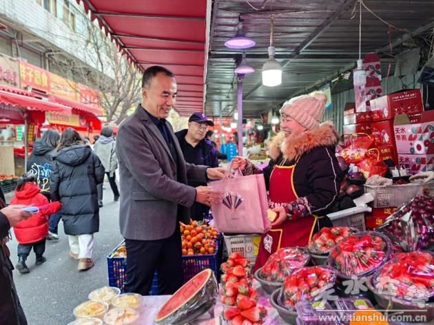 春节将至,为感谢价格调查网点对流通消费价格调查工作的支持和辛勤付出,1月21日,天水调查队党组书记、队长刘斌带队,对价格调查网点人员表达了谢意和节日的问候。
