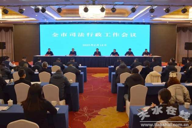 2月14日,天水市司法行政工作会议召开。会议以习近平新时代中国特色社会主义思想为指导,深入贯彻习近平总书记对政法工作的重要指示精神,全面落实中央、省委政法工作会议及全国司法厅(局)长会议、全省司法行政工作会议精神,总结工作,分析形势,安排部署2025年全市司法行政工作。市政府副市长、市公安局局长郭庆祥出席会议并讲话,市政府副秘书长魏立涛主持会议。