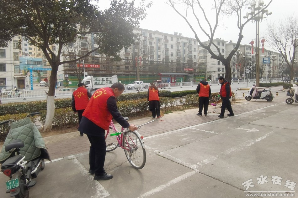 活动中,局领导率先垂范,积极带领志愿者到结对共建社区开展环境卫生整治活动,重点对居民区内道路、绿地、楼道、车库等公共区域进行清扫清洁,对周边背街小巷积存垃圾、枯枝落叶、乱堆杂物等进行清理,清除公共设施上的小招贴和喷涂广告,为小区居民创造一个干净舒适的环境。同时,坚持“三包”志愿服务活动“集中+常态+长效”工作机制,持续巩固扩大城市文明成果,组织党员干部在包街责任路段羲皇大道西路城南小学至征稽站开展志愿服务活动,仔细清理路面上和绿化带中的纸屑、塑料袋、烟头、堆积杂物、枯枝落叶等垃圾,对行人闯红灯、不走人行道、横穿马路等不文明交通行为进行劝导,并将乱停乱放的摩托车、电动车移动到规定区域,助力市容市貌全面提升。