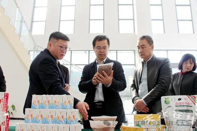 在天水长城果汁集团股份有限公司,调研组一行详细了解了花牛苹果的加工产品种类以及销售情况,实地考察了该公司的产品研发部门和深加工产品生产流水线,同时还关切地询问了我校学生在该企业的岗位实习情况。