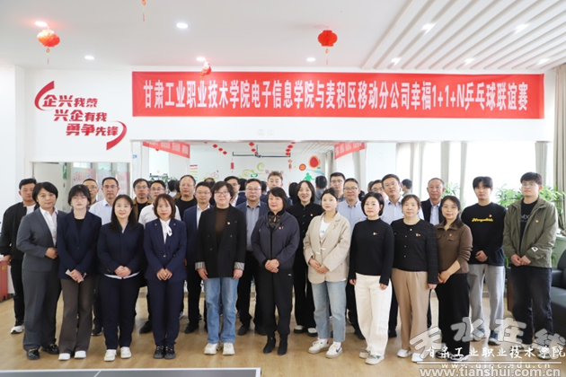 4月9日下午,甘肃工业职业技术学院与中国移动通信集团甘肃有限公司天水分公司成功举行“党建和创暨校企合作签约活动”。此次活动由校党委副书记文云带队,甘肃工业职业技术学院电子信息学院班子成员及全体党员等一行20人赴天水移动公司麦积区分公司,与中国移动天水分公司经理助理刘作栋、麦积区分公司党支部书记、总经理冯福全、副总经理马文博、高强及党员代表共同参加了活动。会议由冯福全主持。