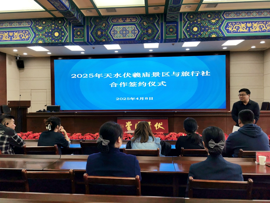 在文旅产业蓬勃发展的当下,拓展旅游市场、整合多方资源显得尤为重要。为共同开拓更为广阔的旅游市场,本着“互惠互利,共同发展”的原则,2025年4月8日,天水伏羲庙景区与部分有合作意向的旅行社签订了合作协议。