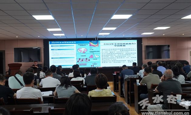 市疾控中心专业人员就学校结核病防控职责和工作要求、学校卫生监督工作要求、甘肃省《关于进一步加强学校结核病筛查工作的通知》和《天水市重点人群结核病筛查工作实施方案》进行了详细的讲解。