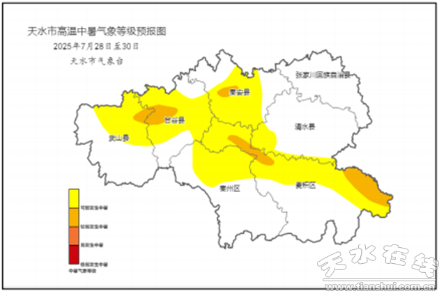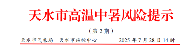 天水市气象局、天水市疾控中心2025年7月28日14时联合发布高温中暑风险提示: