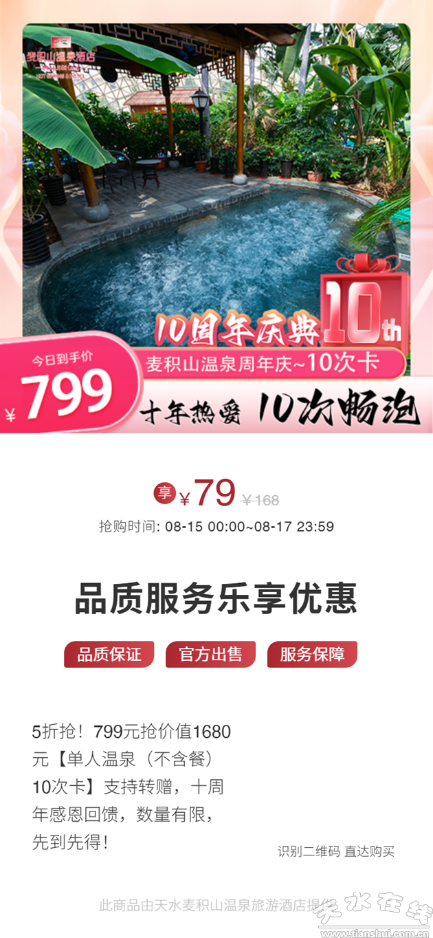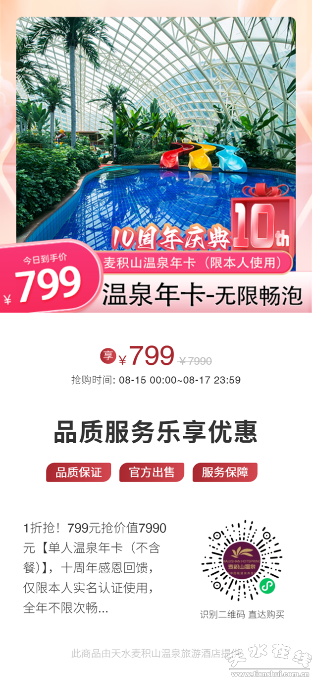 麦积山温泉10周年!年卡799元,单日仅2.2元!无限泡汤+旅拍盛宴!错过再等十年!