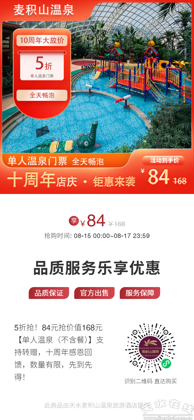8月16日-31日期间,凭本人身份证免费入园泡汤!麦积山温泉请你过生日!