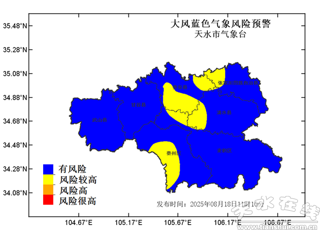 天水市气象局2025年08月18日11时10分发布大风蓝色风险预警: