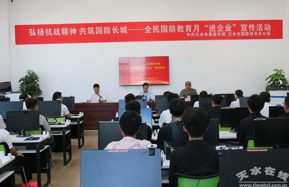 为进一步增强全民国防观念,9月12日,由中共天水市委宣传部、市国防动员办公室联合开展的“弘扬抗战精神·共筑国防长城”国防教育主题活动在三和数码测绘地理信息技术有限公司举行。企业相关负责人、员工代表、无人机操控学员等近70人共同参与,接受了一次生动而深刻的国防教育。