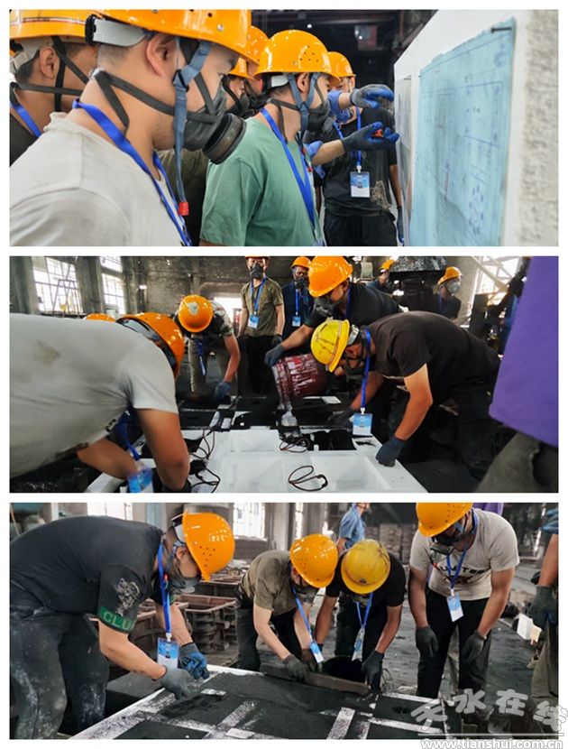 随着裁判员清晰宣读比赛规则,明确评分细则与安全规范,实操比赛正式启动。赛场内,参赛选手迅速进入“战斗状态”,个个精神饱满、专注投入。从砂型制备的原料配比,到模型定位的精准校准,再到细节修整的精雕细琢与装配环节的严丝合缝,每一步操作都彰显专业水准:有的选手凭借丰富经验把控砂型紧实度,为铸件成型质量筑牢基础;有的则在模具拼接处反复核查,杜绝丝毫偏差。整个赛场紧张有序,选手们娴熟的动作、精湛的技艺,既展现了扎实的岗位硬功夫,更传递出精益求精的“工匠精神”。
