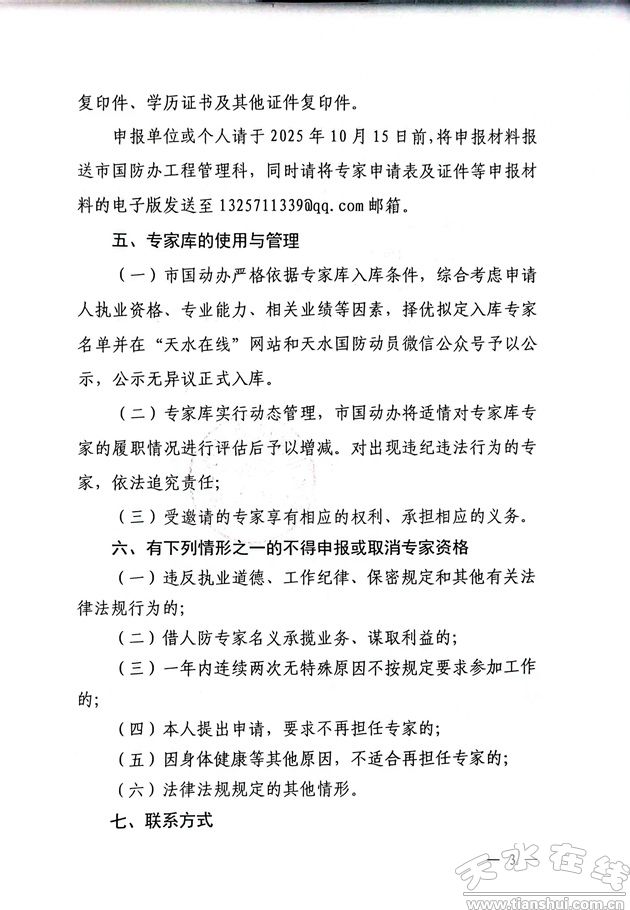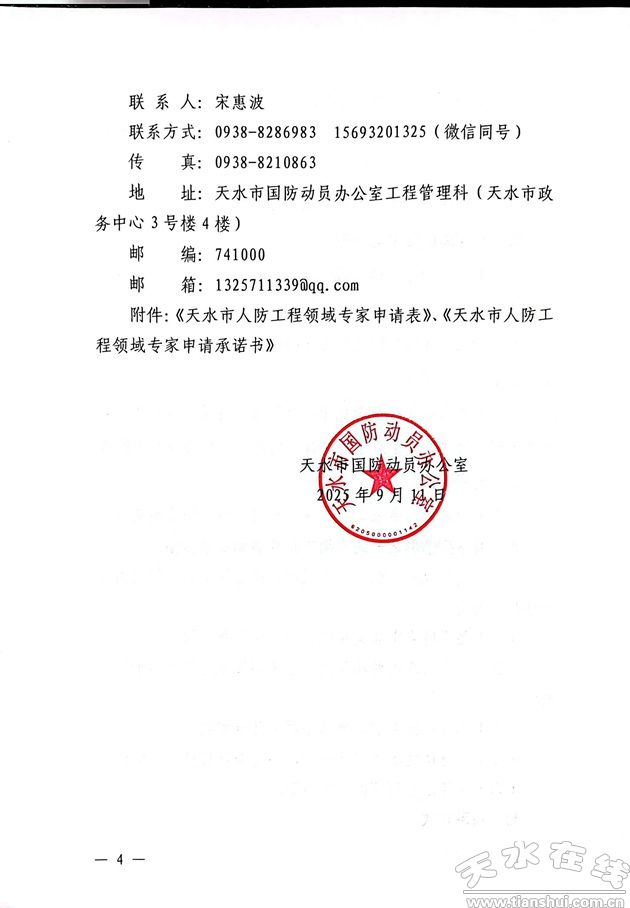 附件:《天水市人防工程领域专家申请表》、《天水市人防工程领域专家申请承诺书》