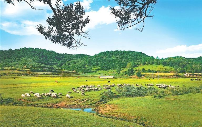 张家川县的关山草原,以浑圆起伏的峰峦、舒展的梁脊、开阔的宽谷与平缓的坡地,勾勒出层次分明的景观骨架。连片的苍翠林木与茵茵草甸铺展成主色调,将大地晕染得生机盎然。成群的牛羊如散落的星辰点缀在绿毯般的草地上,有的低头细品鲜嫩青草,有的昂首眺望远方天际,偶尔轻甩尾巴驱赶蚊虫,一举一动都透着自在悠闲。潺潺溪流顺着地势蜿蜒流淌,澄澈的潭池如明镜般倒映着蓝天白云与牛羊身影,清风拂过,裹挟着草木清香,凉爽气候更添几分惬意,营造出沁人心脾的宜人氛围。