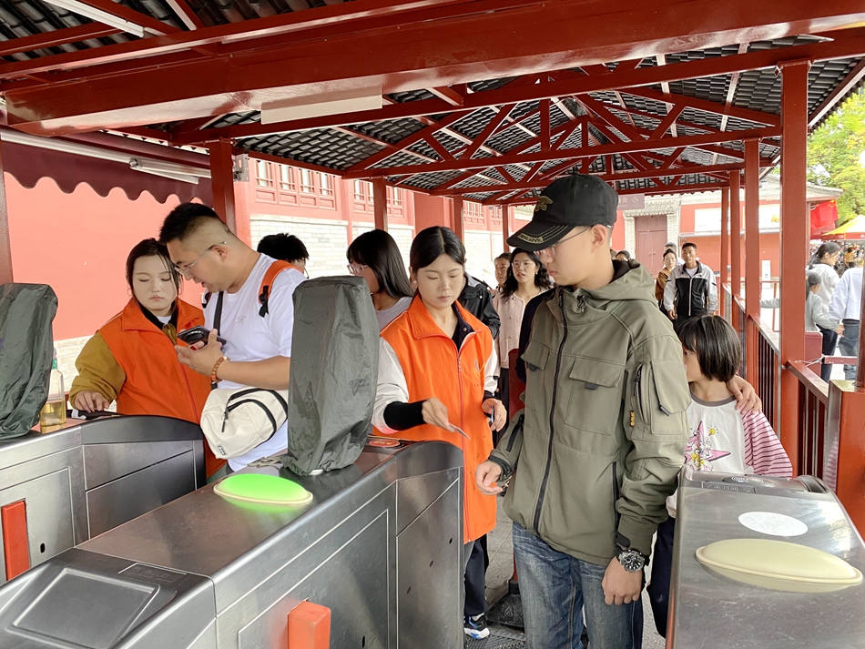 有人放弃了与家人团聚的机会,有人把生病的孩子托付给家人,只为在岗位上多一份坚守。安保人员张新海说:“国庆是大家最需要我们的时刻,守护文物和游客的安全,就是我们对祖国最真挚的祝福。”