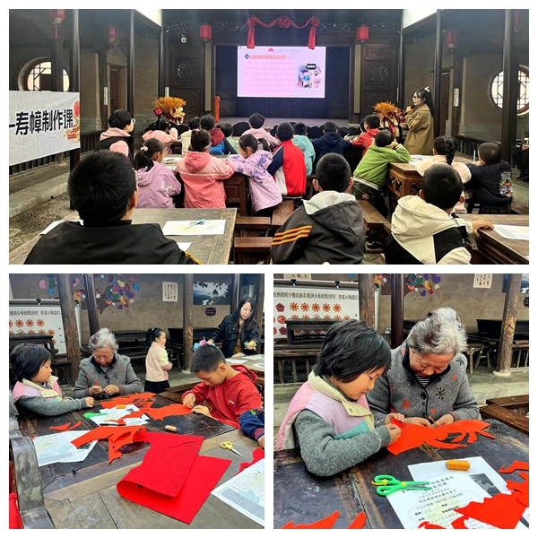 在手工实践环节,社教老师详细演示布料裁剪、图案勾勒、装饰粘贴等寿幛制作工序,并着重强调安全规范与细节把控。青少年以小组为单位协同创作,有的负责裁剪寿幛基底,有的专注勾勒吉祥图案,有的精心粘贴装饰元素,遇到难题时相互交流技巧、主动请教老师。在欢声笑语中,一幅幅凝聚个人创意的寿幛逐渐成型,每一笔勾勒、每一贴装饰,都承载着青少年对敬老美德的践行,更蕴含着对中华优秀传统文化的热爱。