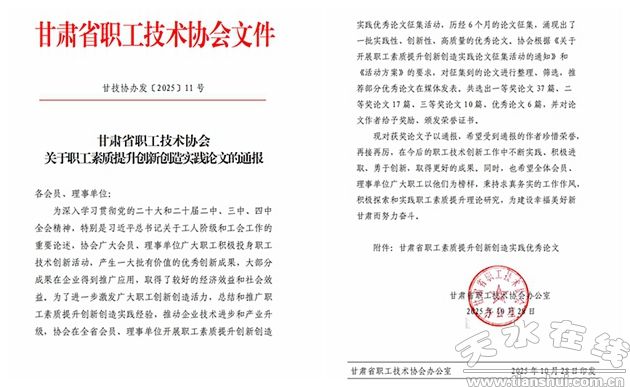 两篇论文的获奖,不仅是对天水锻压集团在班组和职工队伍建设、职工素质提升方面卓越成效的权威认可,也彰显了其在推动产业工人队伍改革、激发企业内生动力方面的标杆作用。
