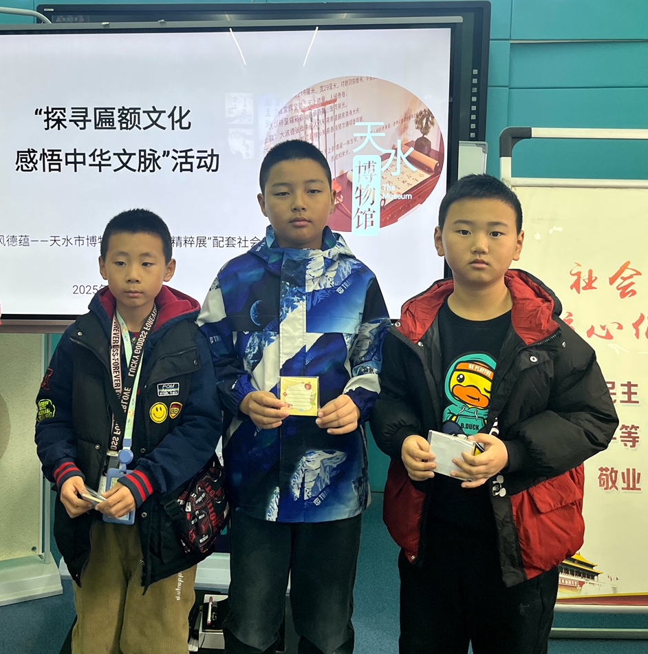 11月16日,“嘉风德蕴——天水市博物馆馆藏匾联精粹展”配套社会教育活动之“探寻匾额文化,感悟中华文脉”主题研学活动在天水市博物馆青少年活动中心举办。活动通过“实地参观+深度讲解+交流探讨”的形式,带领50名青少年探寻匾额奥秘,感受中华文脉。