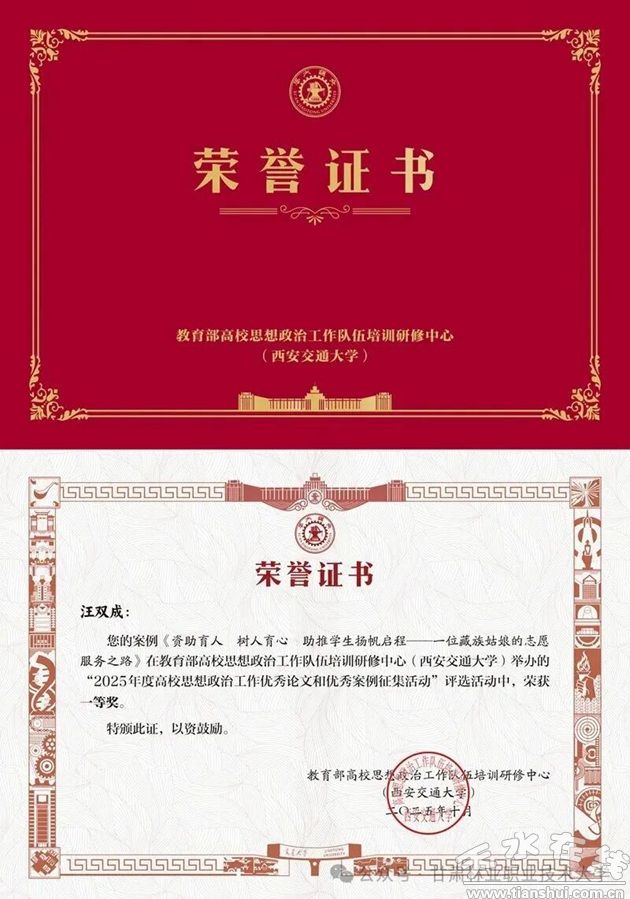 近日,教育部高校思想政治工作队伍培训研修中心(西安交通大学)公布了2025年度高校思想政治工作优秀论文和优秀案例征集活动评选结果,我校辅导员汪双成申报的工作案例《资助育人 树人育心--助推学生扬帆启程》脱颖而出,荣获优秀案例一等奖。