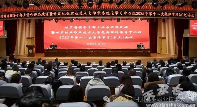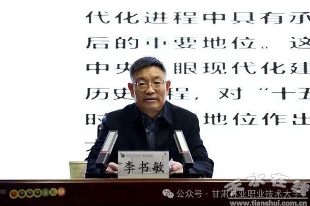 为深入学习贯彻党的二十届四中全会精神和习近平总书记关于学校思政课建设的重要指示精神,按照省委教育工作领导小组对甘肃省领导干部上讲台讲思政课安排,11月18日,省供销联社党组书记、理事会主任李书敏走进甘肃林业职业技术大学,以“厚植为农情怀,服务乡村振兴——深入学习贯彻党的二十届四中全会精神”为题,为广大师生讲授思政课。授课活动与学校党委理论学习中心组2025年第十二次集体学习(扩大)会议同步进行,党委书记孙光慧主持并讲话。