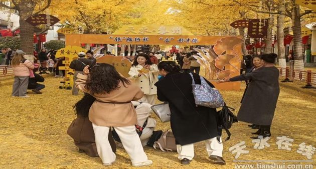 2015年秋冬,一夜之间,这里的银杏树叶由绿变黄,满树金黄摇曳百姿,每一片叶子都像精心雕琢的艺术品,被涂上一层金色的粉末,满树的金黄与蔚蓝色的天空交相辉映。微风使叶片在空中翩翩起舞,纷纷落地,留下了满地的金黄,美得让人心醉。引得许多市民前往观赏、拍照,游客驻足打卡、转发,一度道路堵塞,交通中断。当地政府敏锐的感觉到生态环境带来的自然美景,给这座古城又将赋予新的韵味和景色,给市民们带来别样的欢乐,当即决定留下落叶,供市民和游客们观赏,品味,打卡、拍照。短短几天时间,人潮如海,本地人,外地人,男女老少,数万人拥向这里,大道变成欢乐的海洋。观赏者、表演者、打卡者络绎不绝,欢乐声,嬉笑声充斥大道,人们兴奋之余把这里称为“黄金大道”。从此,“黄金大道”名气大振,正式登场,一发而不可收场,美誉迅速从天水散播到全国,引起游客、网友们的广泛关注和新的文旅打卡地,全市秋冬全城狂欢之地。