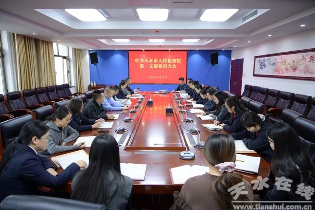 11月17日,天水市人民检察院第一党支部召开全体党员大会,集中学习党的二十届四中全会精神并开展学习交流。市检察院党组书记、代理检察长王龙参加会议,与支部党员一同交流体会和感悟。