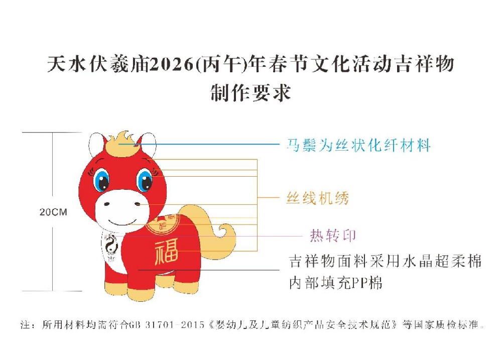 为传承弘扬伏羲文化,丰富2026年天水伏羲庙春节文化活动内涵,天水市博物馆设计了专属吉祥物,现对该吉祥物的制作进行公开招标,欢迎符合条件的供应商前来投标。
