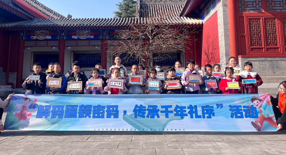 为深化青少年对匾额文化的认知,体悟其与传统礼序的深厚渊源,11月23日,天水市博物馆精心策划了“解码匾额密码,传承千年礼序”主题社会教育活动。活动以沉浸式体验的方式带领青少年走进匾额的文化世界,探寻其中蕴含的礼仪规范与精神内核,助力青少年厚植文化自信,树立传承中华优秀传统文化的责任意识。