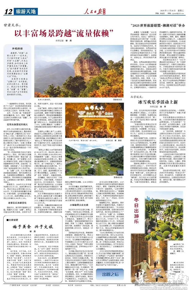 兰州大学经济学院教授陈南旭认为,天水文旅已跨越“流量依赖期”,进入“品牌溢价—产业联动—数字驱动”的高质量发展阶段。面向“十五五”,建议天水市聚焦产业链韧性建设、淡季流量激活、文化附加值提升等,进一步推动文旅产业“叫好又叫座”。(人民日报记者银燕)