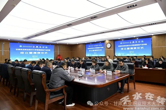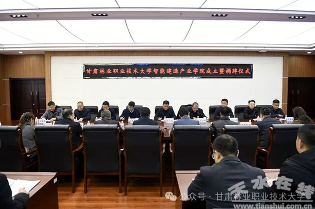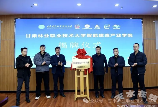 校企携手育新才,产教融合启新程。11月21日,甘肃林业职业技术大学携手甘肃智通科技工程检测咨询有限公司等5家行业骨干企业,共同举行智能建造产业学院揭牌仪式。学校党委副书记、副校长罗广元,党委委员、办公室主任罗龙,甘肃智通科技工程检测咨询有限公司副总经理王吉红等校企代表出席活动,仪式由学校党委委员、副校长史万琼主持。