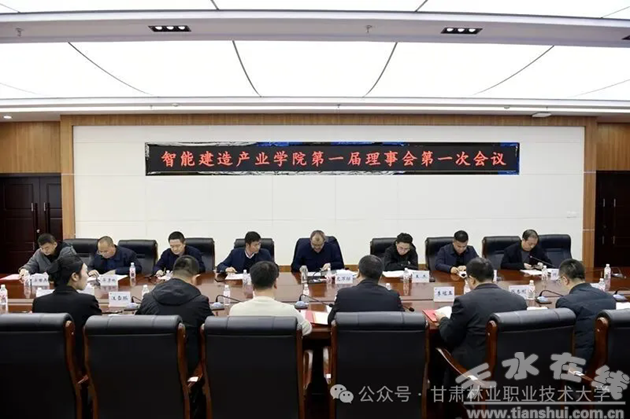 揭牌仪式后,智能建造产业学院召开了首届理事会第一次会议。