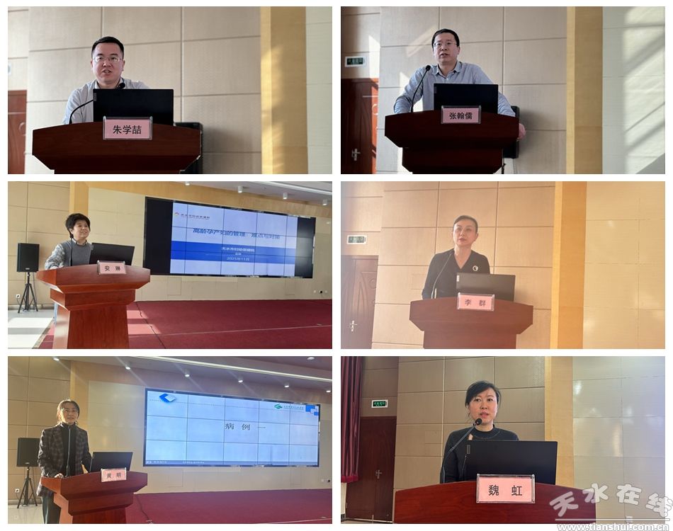 开幕式结束后,培训现场气氛热烈,参训人员学习热情高涨。来自甘肃省妇幼保健院的何晓春、李怡林、党云等专家,分别围绕“胎儿宫内发育迟缓的规范治疗”“子宫内膜异位症规范治疗”“各期别宫颈癌治疗原则”等前沿课题授课;天水市妇幼保健院副院长安琳、市第一人民医院妇产科主任李群及市四院妇科主任黄明、产科副主任魏虹等专家,分享了“高龄孕产妇规范管理”“复发性流产个体化诊疗”及典型病例处置经验。培训采用专题授课、案例分享相结合的形式,既有最新指南解读,又有临床实操指导,针对性与实用性极强。参训学员纷纷表示,课程内容干货满满,将认真消化吸收,把所学知识转化为临床实践本领,更好服务辖区孕产妇等人群。