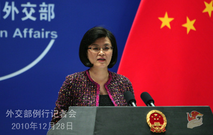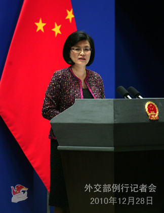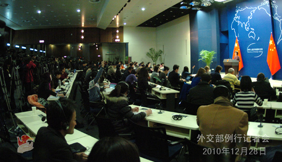 2010年12月28日,外交部发言人姜瑜主持例行记者会。