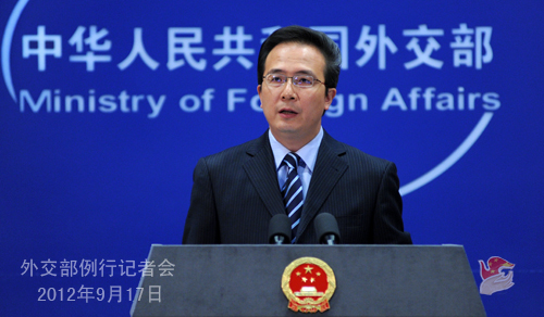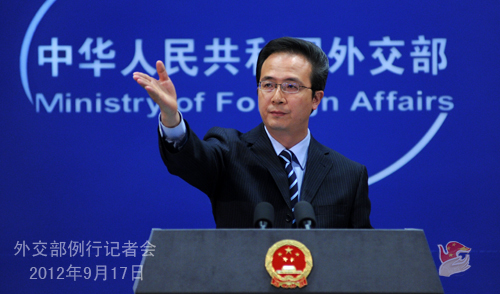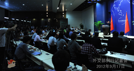 2012年9月17日,外交部发言人洪磊主持例行记者会。