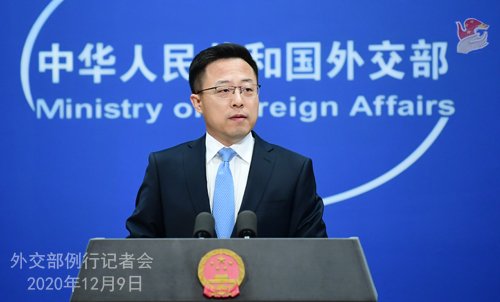 赵立坚:12月8日,中国—联合国和平与发展基金设立5周年“成就与展望”研讨会以视频方式举行。来自40多个会员国、联合国秘书处各部门和专门机构等100余名代表出席会议。