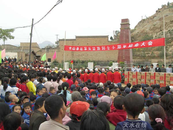 中国工农红军长征是历史上前所未有的伟大创举,是中国革命斗争史上气壮山河的英雄史诗。1935年9月至1936年10月,毛泽东、周恩来、朱德、任弼时、徐向前、贺龙等老一辈无产阶级革命家领导的二万五千里长征,采取灵活机动的战略战术,四渡赤水、巧渡金沙江、强渡大渡河、飞夺沪定桥,冲破了国民党几十万大军的围追堵截,战胜了张国焘的分裂主义,征服了无数的艰难险阻,跨过了人迹罕至的雪山草地,先后3次经过武山,活动时间长达50多天,在这里播下了革命火种,宣传了马列主义和中国共产党的抗日救国主张。1936年10月到达陕北革命根据地,取得了长征的最后胜利。长征的胜利,实现了中国共产党北上抗日的方针,推动了全国革命形势的发展,为实现全国抗战奠定了基础。