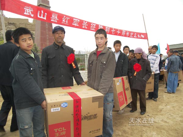 10月24日,武山县四大组织领导及有关部门领导,深入健在的遗留红军及部分红军遗属家中进行慰问,并为他们每户送去了一台电视机和其它慰问品。