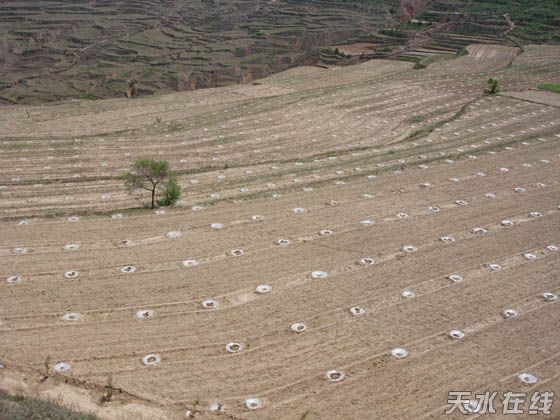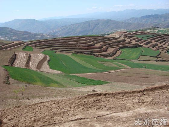 涉及鸳鸯、桦林、高楼三乡镇的桦林沟流域综合治理工程万亩梯田点建设一角