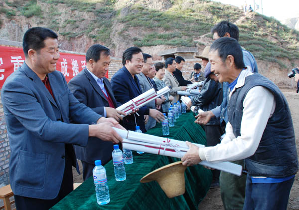 入住仪式上,市、县领导为入住的每户群众各赠送了一幅名家书画。