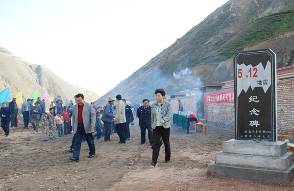 10月8日下午,武山县榆盘乡鲁班村宋家山组彩旗飘扬,锣鼓喧天,礼炮齐鸣,每个人脸上都绽放着幸福的笑容,到处洋溢着喜庆的气氛。武山县在这里隆重举行了第一个灾后重建异地搬迁入住仪式。